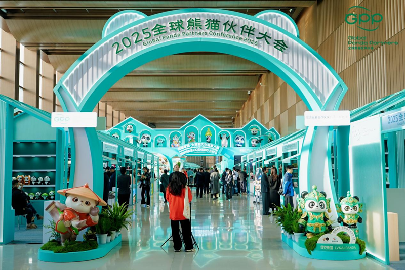 2025全球熊猫伙伴大会熊猫文创集市现场。曹鹏 摄