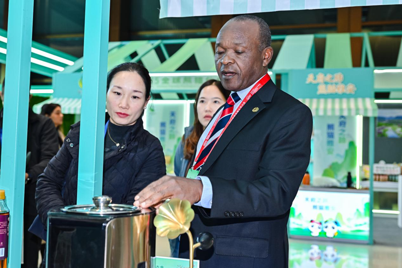 外宾在“天府菜油”展位参观。曹鹏 摄